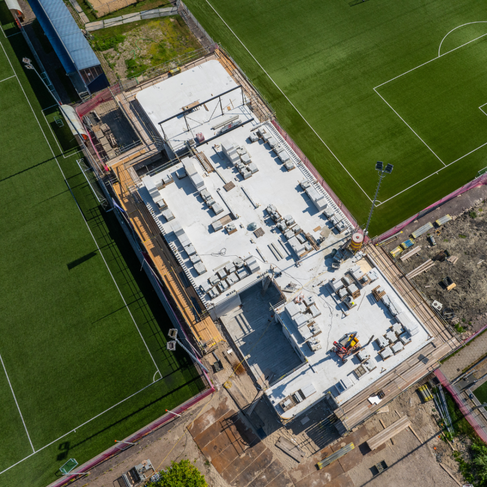 De leukste fase van de bouw lijkt te zijn begonnen: de eerste contouren van het pand zijn zichtbaar. De begane grond van het pand heeft zijn vorm al gekregen en er staan zelfs muren! Kortom: we kunnen al iets meer een voorstelling krijgen van hoe het pand er straks uit komt te zien. Spoiler: heerlijk ruim! We kijken uit naar de bouw van de volgende verdieping en houden jullie uiteraard op de hoogte.